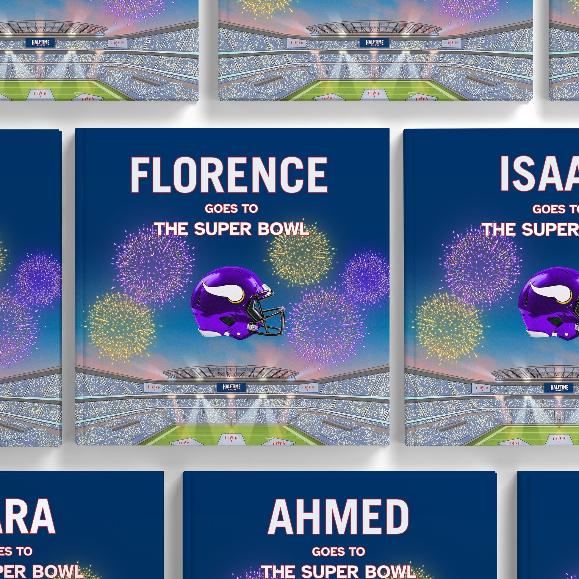 Our You Are The Star books are truly one-of-a-kind, featuring stunning artwork created by talented artists who have visited the stadiums to capture the authentic atmosphere, energy, and spirit of the game. We are proud to be the only company with an official license to create personalized children’s books for the Minnesota Vikings and the NFL, making these books an exclusive gift for young football fans. Plus, with every book purchased, a portion of the proceeds supports the NFL Foundation, focusing on enhancing health, safety, and wellness through youth sports programs, player health initiatives, community support, aid for former and injured players, and social justice projects, creating a positive impact on and off the field.