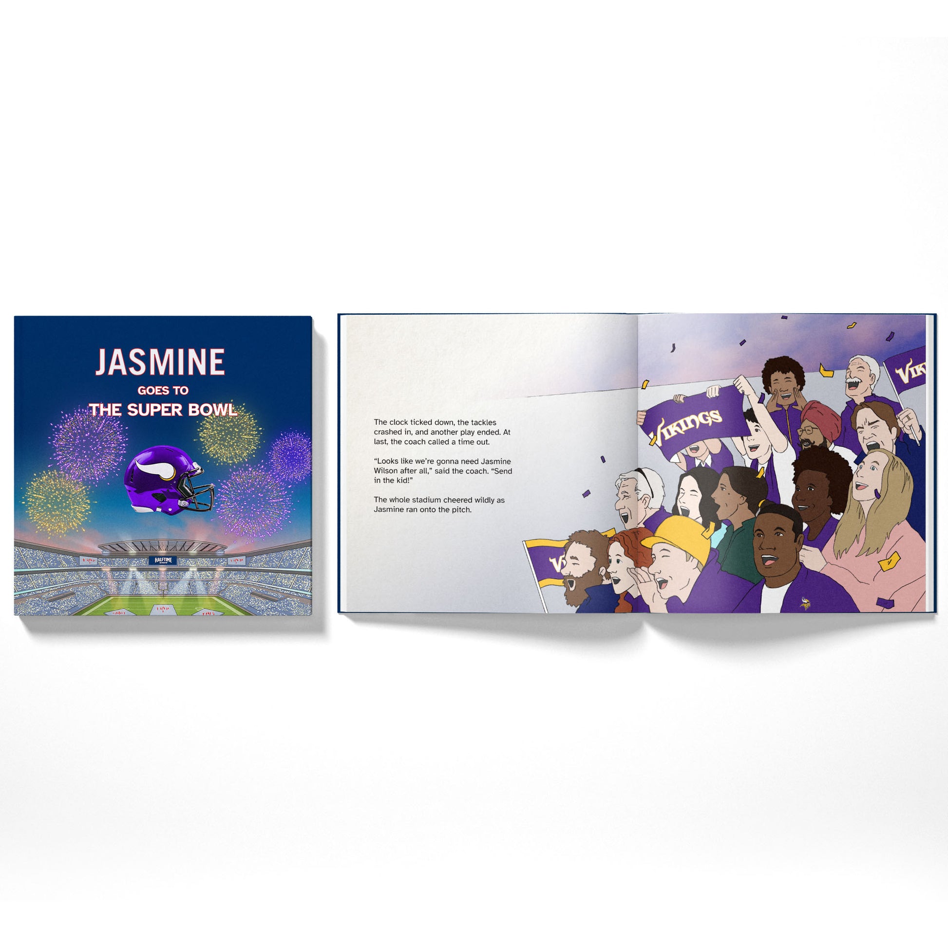 - The Star of the Book – Your child takes center stage as they strap on their helmet, dash across the field, and make game-winning plays alongside their Minnesota Vikings heroes!